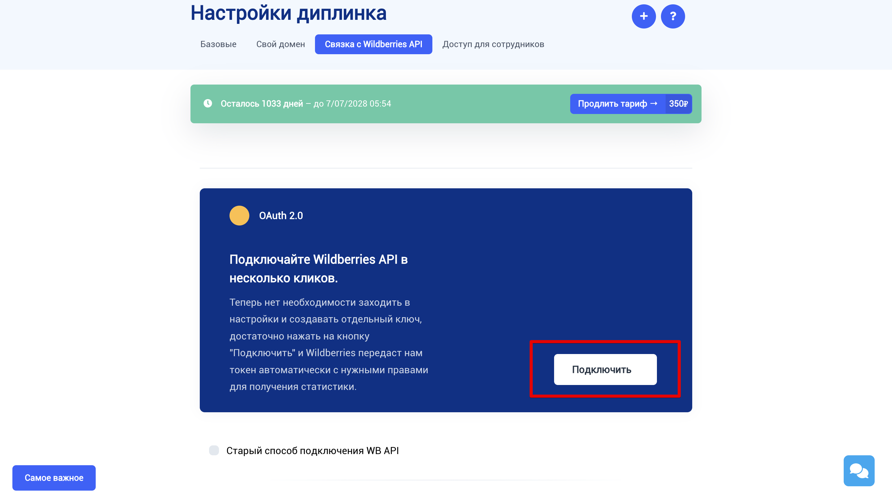 2. Далее вам нужно зайти на вкладку "Связка с Wildberries API".
